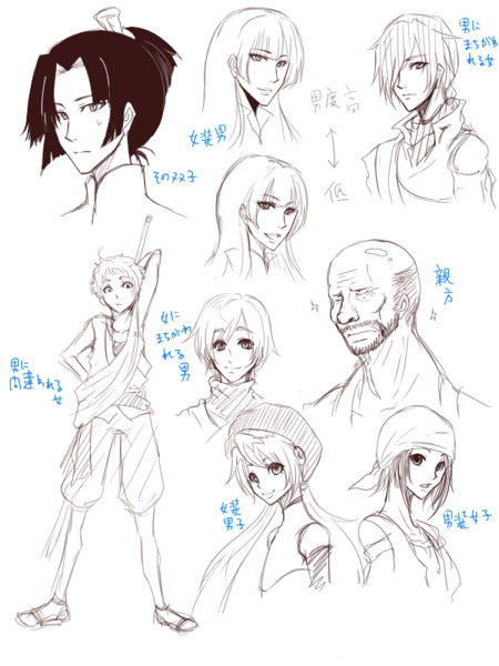 仮面工房の親方が書いてあるのはなんか中性的な顔ばっかりかいて飽きたから